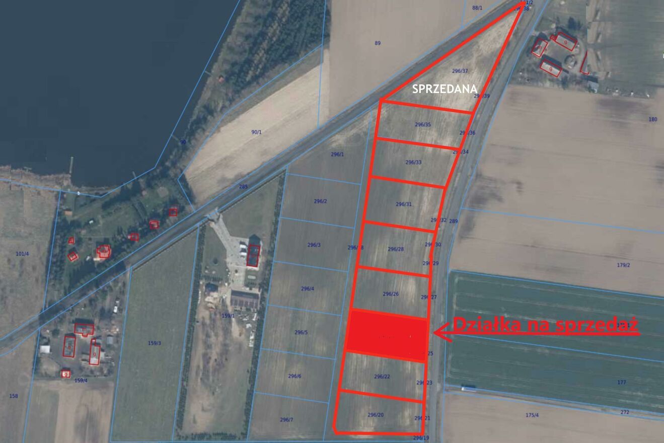 - przy drodze szutrowej nr. 285 ok. 202 m od sprzedawanej działki nr. 296/24 znajduje się woda, kanalizacja, gaz i telefon